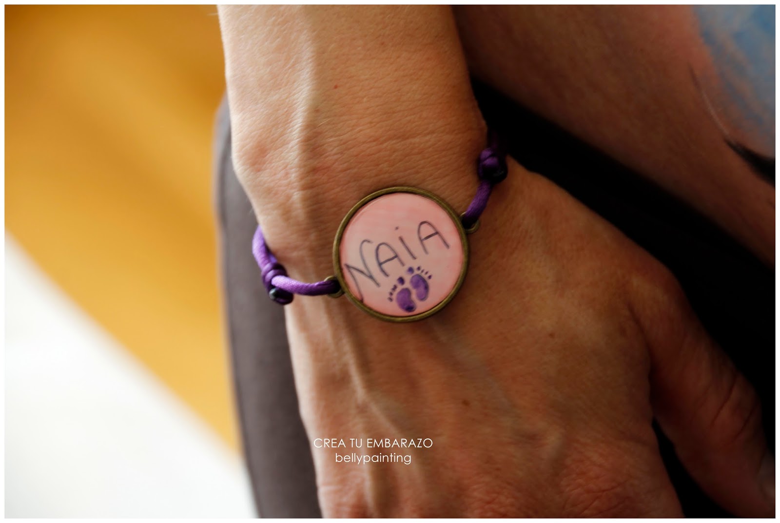- Un colgante con el diseño del dibujo en acuarela o con el nombre de tu bebé.
